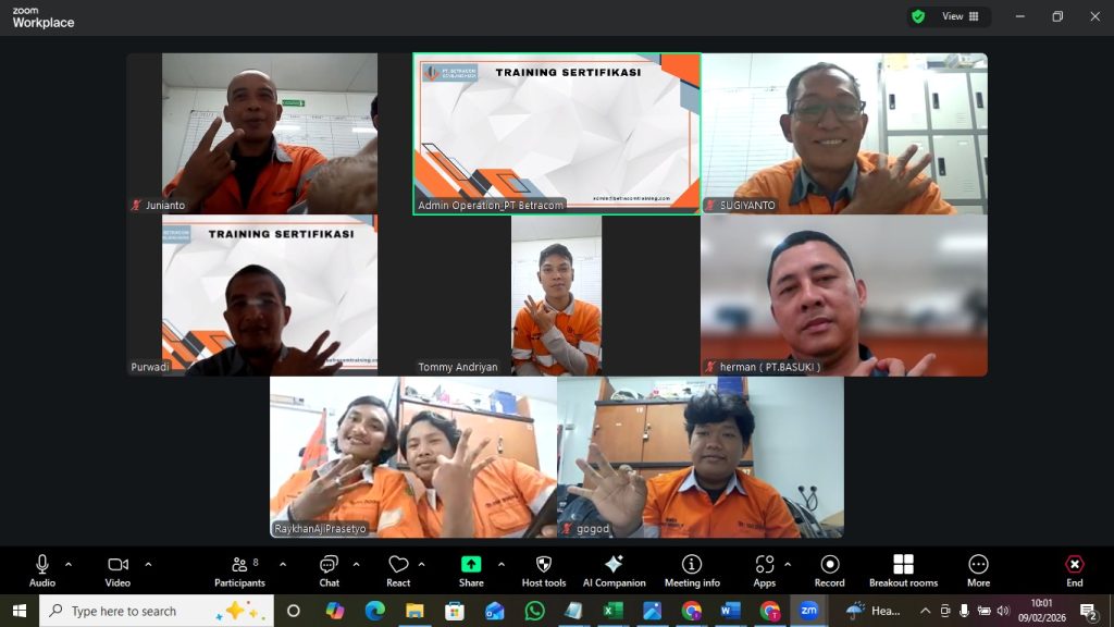 Telah dilaksanakan Pelatihan Teknisi K3 Ruang Terbatas Sertifikat Kemnaker Tgl 09-13 Februari 2026. Blended Training, Bogor.